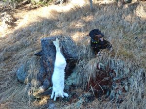 - Lois Mattersberger bei der Hasenjagd in Matrei mit seiner Hündin „Dixi vom Mühllach“