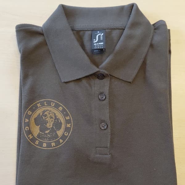 Klassisches Damen Kurzarm Polo Shirt mit „Klub Dachsbracke“ Aufdruck. 100% Baumwolle.